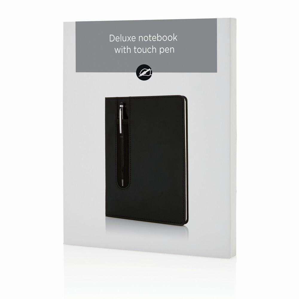Zestaw upominkowy, notatnik A5 (80 kartek w linie), okładka z PU, miejsce na długopis i metalowy długopis, touch pen, w ozdobnym pudełku