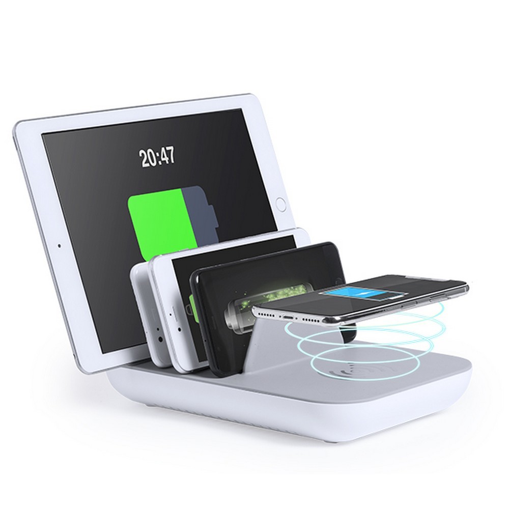 Bezprzewodowa ładowarka do telefonu, 3 wyjścia USB, wyjście typu C, 10000 mA, działa z telefonami posiadającymi możliwość ładowania indukcyjnego, w zestawie kabel