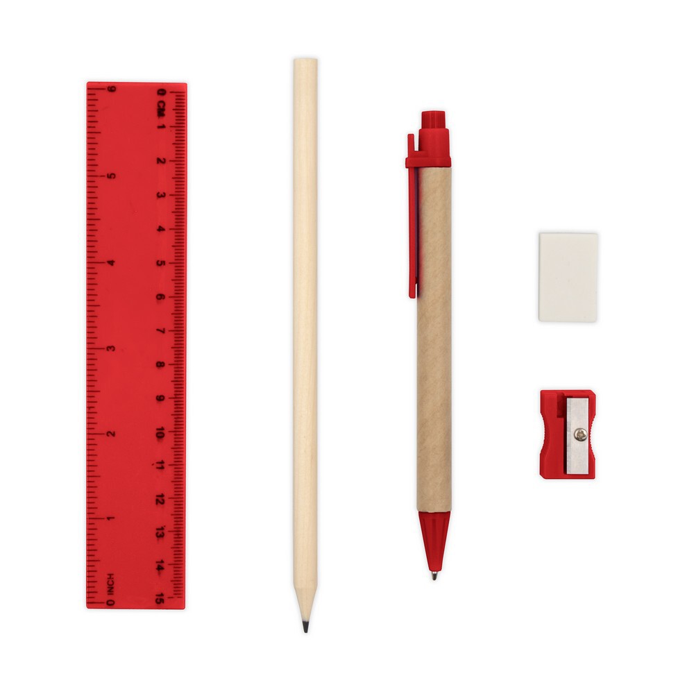 Zestaw szkolny, piórnik, ołówek, długopis, linijka, gumka i temperówka | Tobias / Czerwony