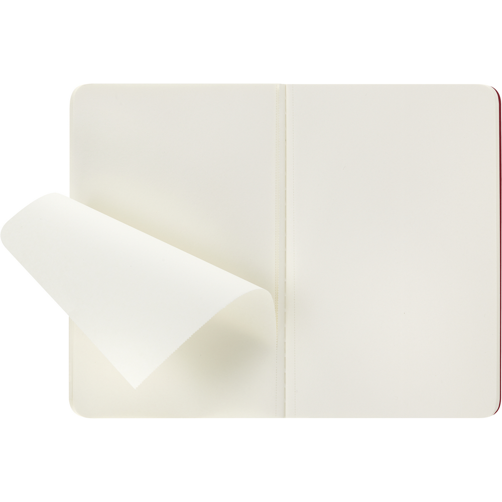 Kieszonkowy (pocket) zeszyt MOLESKINE Cahier Journal (64 gładkie strony), miękka okładka z widocznymi przeszyciami na grzbiecie, kieszeń wewnętrzna, 16 kartek z perforacją umożliwiającą wyrwanie na końcu