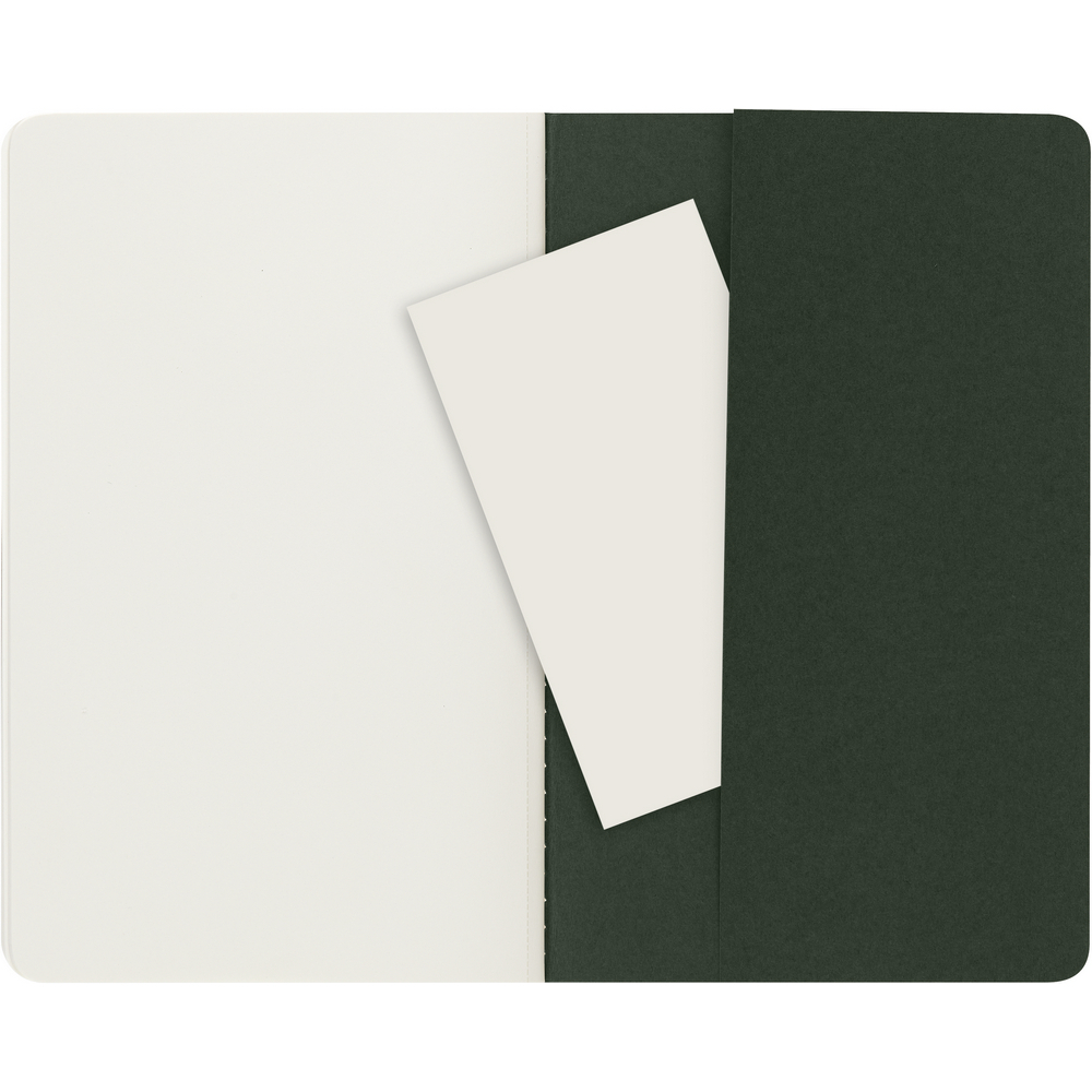Duży (large) zeszyt MOLESKINE Cahier Journal (80 gładkich stron), miękka okładka z widocznymi przeszyciami na grzbiecie, kieszeń wewnętrzna, 16 kartek z perforacją umożliwiającą wyrwanie na końcu