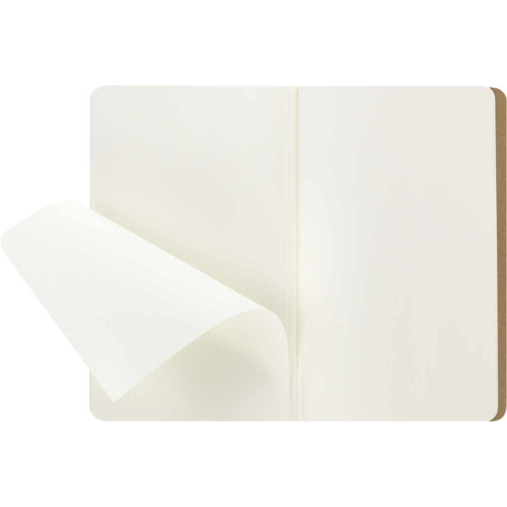 Duży (large) zeszyt MOLESKINE Cahier Journal (80 gładkich stron), miękka okładka z widocznymi przeszyciami na grzbiecie, kieszeń wewnętrzna, 16 kartek z perforacją umożliwiającą wyrwanie na końcu