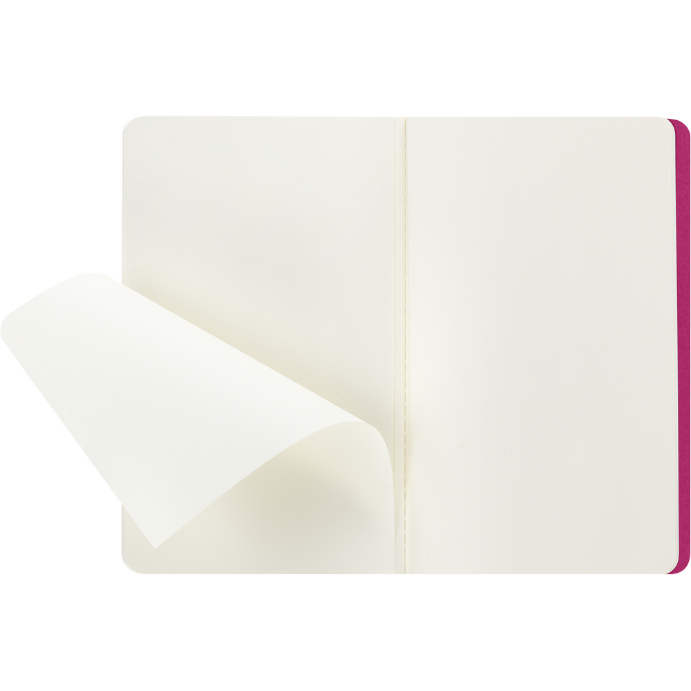 Duży (large) zeszyt MOLESKINE Cahier Journal (80 gładkich stron), miękka okładka z widocznymi przeszyciami na grzbiecie, kieszeń wewnętrzna, 16 kartek z perforacją umożliwiającą wyrwanie na końcu
