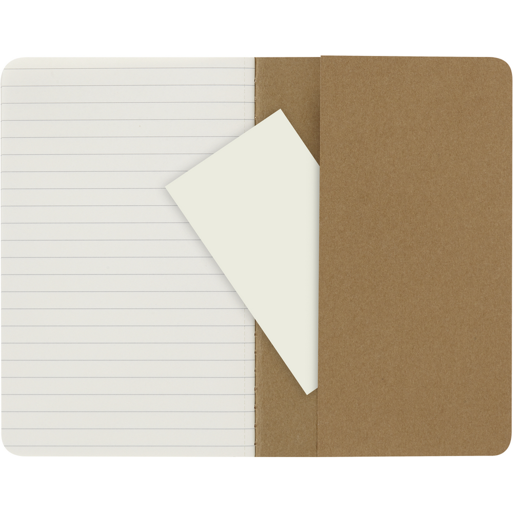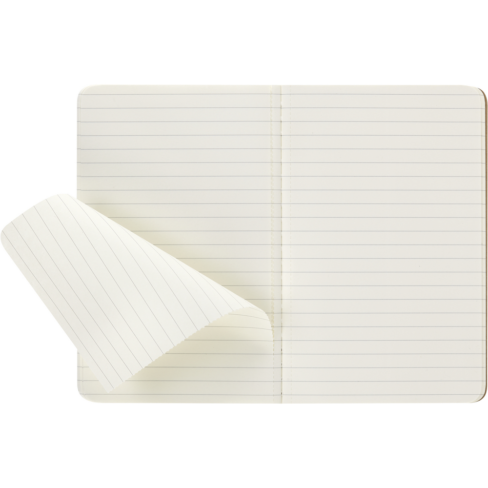 Kieszonkowy (pocket) zeszyt MOLESKINE Cahier Journal (64 strony w linie), miękka okładka z widocznymi przeszyciami na grzbiecie, kieszeń wewnętrzna, 16 kartek z perforacją umożliwiającą wyrwanie na końcu