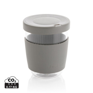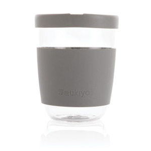 Lidan Szklany kubek o pojemności 360 ml z korkowym uchwytem i silikonową pokrywką